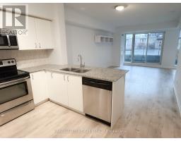 Vacant move in ready professionally managed east-facing unfurnished suite directly overlooking Liberty Village Park from a wide private balcony! Larger than the average one bedroom suite, the layout features a peninsula kitchen with breakfast bar overlooking open concept living room, corner den/office space, and bedroom that opens towards the park. Features and finishes include vinyl plank flooring throughout, stone countertops, laundry centre in bathroom, stainless steel appliances, tile backsplash, undermount steel sink, quiet and convenient second floor placement overlooking park, suite controlled heating and cooling. || Appliances: fridge, electric stove, range exhaust, dishwasher, washer, dryer. || Utilities: tenant pays electricity. || Parking and locker not included. || Building amenities: refer to listing images (id:50886)