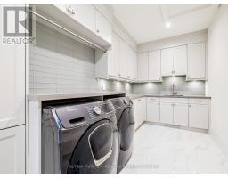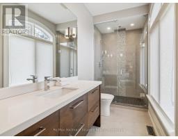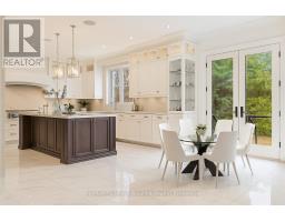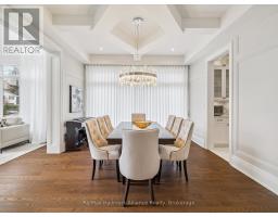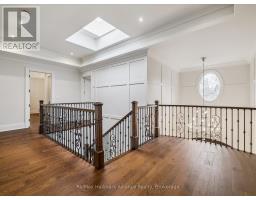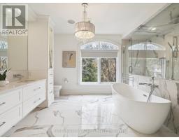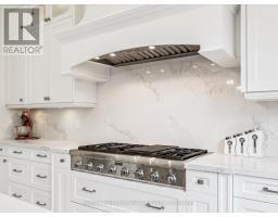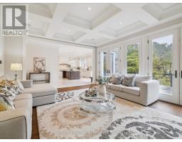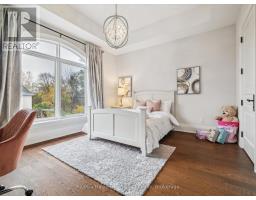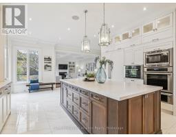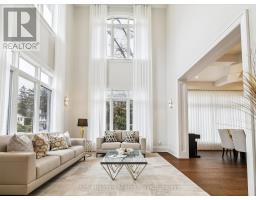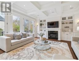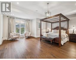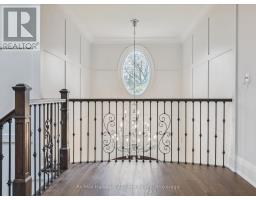 Welcome to this elegant custom-built french chateau ideally situated on a quiet, child-safe street with no sidewalk in the heart of South East Oakville. Thoughtfully designed and meticulously crafted by the original owner to the highest standards of quality, this home showcases refined architectural detail, timeless elegance, and a highly functional layout. Step inside to discover rare 10-foot ceilings on all three levels and a magnificent 20-foot two-storey great room with oversized floor-to-ceiling windows that fill the home with natural light. The interior exudes sophistication with extensive panelled wall detailing, custom crown mouldings, and varied ceiling designs in every principal room. A large custom skylight on the upper floor enhances the home's bright, airy ambiance.The main floor home office, beautifully appointed with custom walnut built-ins, provides a distinguished workspace. The gourmet eat-in kitchen is a chef's dream, featuring a large centre island, premium custom cabinetry, top-of-the-line appliances, and a walk-in pantry with a servery-all seamlessly open to the breakfast area and family room for effortless family living and entertaining.The upper level offers four generous bedrooms, each with its own private ensuite bathroom and 10-foot high tray ceilings, along with a convenient upper-level laundry room.The walk-out lower level extends the living space with a spacious recreation room, exercise room, guest bedroom, full bathroom, and bar area, along with abundant storage space.This residence also includes built-in speakers throughout, security cameras, an alarm system, and a natural stone exterior. The extra-long driveway accommodates 8+ cars, offering both practicality and curb appeal. A rare combination of luxury, comfort, and location, this exceptional home embodies the best of South East Oakville living - just 600 metres from top-rated schools, walk to the lake, parks, and other amenities, all in one of the area's most coveted settings. (id:50886)