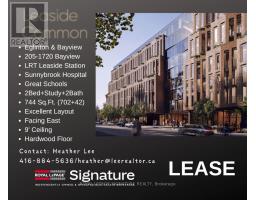 Welcome To The Prestigious LEASIDE COMMUNITY! Be The First Residents of This Brand New Luxury Boutique Condo, Leaside Common*** This Wonderful 744 Sq. Ft. (Interior 702 Sq. Ft. Balcony 44Sq. Ft.), 2Bed+Study+2Bath+Balcony Suite Features Open Concept, Beautiful East Exposure, Very Functional Excellent Layout, Cozy Balcony With Gas & Water Connection, Contemporary 9-FT Ceiling, Floor-To-Ceiling Tinted Windows, & Hardwood Flooring Throughout. Kitchen W/ Custom Italian-Designed Cabinetry, Gaggenau Gas Cooktop, Quartz Countertop & Backsplash, Oversized S/S Undermount Sink, Under-Cabinet LED Lighting, Versatile Island for Dining, and Premium Finishes throughout. Main Bedroom W/ 4PC Ensuite Bath, His & Her Closet & Windows For Heritage Leaside Community Views. Advanced, Individually Controlled HVAC Unit W/ Fresh Air Ventilation System In The Living Room Is For Healthy Indoor Air Quality. Enjoy Advanced Life W/ Smart Community Including Mobile resident App For In-Unit and Building Controls, Keyless Suite Entry Locks & Smart Thermostat. 24-hr Concierge & Building Security System W/ CCTV, Pre-Wired For Smart Home Monitoring, Top-Tier Amenities, Fitness Centre, Co-Working Lounge, Outdoor Terrace Kids' Play Area. The Location Is Superb At Eglinton & Bayview, Steps To Upcoming LEASIDE LRT STATION. TTC, Parks, Top Schools, Sunnybrook Hospital & Traditionally Acknowledged Beautiful Eatery Road of Bayview's Shops & Cafes. The Best Chance For Yonge Professionals & Families To Enjoy Sophisticated Life As Real Torontonians! (id:50886)