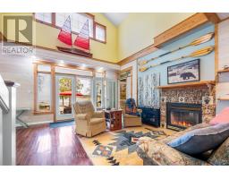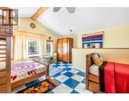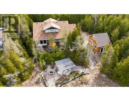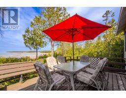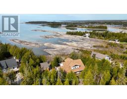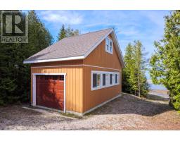 Welcome to your private lakefront home with sandy beach on a beautiful cove ideal for weekend retreats or your retirement years. Drive up the winding driveway through the pine trees and leave your cares behind. The property is nicely situated to provide expansive lake views where you can watch the seagulls circle and enjoy glorious sunsets from one of two decks or the stone beachside patio. The sandy bottom water entry allows for family members of all ages to enjoy swimming, kayaking or paddle boarding. Play all day then enjoy evenings by the fire while listening to the water lap at the shoreline. Along with 2 generous sized decks the home features two covered porch seating areas, at both the front and back, with walkouts from the main floor bedroom, sunroom, dining room & living room. Inside you will discover that each room has been situated to take advantage of the water views, along with little touches throughout that make this property unique. The large generous kitchen/dining and living area with its soaring ceiling provides open plan living and space for entertaining. A two-sided fireplace with custom designed surrounds, provides ambience for relaxing in both the living room or the primary bedroom. There are two bedrooms located at each end of the house for added privacy. The primary bedroom with ensuite, leads to a screened three-season sunroom with a sofabed and woodstove, a restful retreat for a morning coffee or a good book. A second generously sized bedroom along with a four-piece bath round out the main floor. The kids will love the loft bedroom with its four single beds and views of the lake. It is the perfect getaway for sharing nighttime giggles or pulling out a game and making memories. The property also has a single car garage with space above for extra storage or room to finish for a Bunky or games room. This home comes turnkey and is conveniently located across from the Bruce National Park and within a 15-minute drive of Tobermory for amenities. (id:50886)