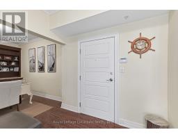 $1,091.60 MonthlyWelcome to the Shipyards, Collingwood's premier waterfront community. This rare, penthouse-style second-floor condo offers one of the best and truly unobstructed views of Georgian Bay in the entire complex. Ideally positioned along a protected public/private walkway, this unit enjoys permanently open sightlines toward Sunset Point-an exceptional advantage for waterfront buyers. This spacious 1,657 sq. ft. "Station" model features 2 bedrooms plus a den, 9-ft ceilings, and an extra-wide open-concept layout. Floor-to-ceiling windows fill the living and dining area with natural light while capturing stunning panoramic bay views. Highlights include gleaming hardwood floors, a gas fireplace with custom built-ins, and a beautifully kitchen. The generous primary suite offers a walk-in closet and spa-like ensuite. The den or office near the foyer, complete with built-ins, is ideal for guests or a home office. Step outside to the large 125 sqft covered balcony and enjoy peaceful waterfront living just steps from trails and the harbour. Premium features include two underground parking spaces located beside the elevator, a large storage locker, kayak/canoe room, ski/bike storage, secure lobby, and a party room with kitchen and outdoor BBQ area. Water access and public docking are conveniently located right outside the building. FULLY FURNISHED (id:50886)