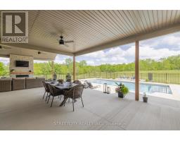 Endless possibilities await in this unique Custom Built Estate. Countryside Living on 6.9 acres while being in the City, minutes from Hyde Park Shopping Centre and Western University. This Architectural masterpiece blends Old-World charm with modern amenities and includes a private guest house- perfect for visiting family and friends or rental. The main residence offers excellent potential for multi-generational living, featuring a recreation room, bar/kitchen, two additional bedrooms, a full bath, and laundry facilities. The inviting entrance leads to an open-concept layout, featuring 10-foot ceilings and combined with in-floor heating on both levels, enhances unparalleled luxury. The elongated dining room is perfect for gatherings, and a cozy gas firplace with a stone mantle adds warmth throughout. A barrel ceiling extends from the great room to the covered rear porch, blending indoor and outdoor living. The chef inspired kitchen is anchored by a custom stone-cast range hood and 48-inch professional gas stove offering 8 burners and 2 ovens. Patio doors from the dinette and a pass through window from the pantry, complete with full refrigerator and sink, leads to the back porch dining area. Secondary bedrooms feature custom closets and private ensuites for comfort and privacy. This home offers over 6573 sq ft of finished living space. The outdoor space is ideal for entertaining with stone gas fireplace and covered porch overlooking the 18x40 in ground pool with sun ledge. This home offers luxury, comfort and endless possibilities for family living. (id:50886)