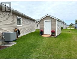 Absolutely stunning! This beautiful home offers nearly 1600 sq ft of living space and is situated on one of the largest and most private premium lots at The Bluffs! Just imagine the lifestyle, living along the shores of Lake Huron, close to shopping and fantastic golf courses along with your own private community recreation center complete with library, party rooms, sauna and indoor pool! This incredible "Cliffside B with sunroom" model has seen an extensive number of upgrades added and is an absolute pleasure to show! Features include a large custom kitchen with crown moulding, center island, pantry, upgraded appliances and quartz countertops. You will love all of the custom "pull out" shelving in the cabinets as well! The living room boasts a fireplace surrounded by wall-to-wall custom cabinetry. Also located close to the kitchen is a spacious dining room, perfect for dinner parties! The sunroom sports a cathedral ceiling and patio doors leading to a concrete patio overlooking the extensive gardens and offering a panoramic view of the countryside! Other features include a large primary bedroom with walk-in closet, 3 pc ensuite bath including a shower light and vanity with quartz countertop. Just down the hall is a spacious second bedroom and 4 pc main bath with shower/bath light, linen closet and vanity with quartz counter top. Premium window coverings and upgraded light fixtures are also prevalent throughout. Services include radiant in-floor radiant heating along with a gas furnace offering forced air heating and A/C. There's also an attached two car garage with custom shelving and separate storage shed on the property. This home is truly the ultimate in quality construction and location! (id:50886)