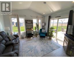 Absolutely stunning! This beautiful home offers nearly 1600 sq ft of living space and is situated on one of the largest and most private premium lots at The Bluffs! Just imagine the lifestyle, living along the shores of Lake Huron, close to shopping and fantastic golf courses along with your own private community recreation center complete with library, party rooms, sauna and indoor pool! This incredible Cliffside B with sunroom model has seen an extensive number of upgrades added and is an absolute pleasure to show! Features include a large custom kitchen with crown moulding, center island, pantry, upgraded appliances and quartz countertops. You will love all of the custom pull out shelving in the cabinets as well! The living room boasts a fireplace surrounded by wall-to-wall custom cabinetry. Also located close to the kitchen is a spacious dining room, perfect for dinner parties! The sunroom sports a cathedral ceiling and patio doors leading to a concrete patio overlooking the extensive gardens and offering a panoramic view of the countryside! Other features include a large primary bedroom with walk-in closet, 3 pc ensuite bath including a shower light and vanity with quartz countertop. Just down the hall is a spacious second bedroom and 4 pc main bath with shower/bath light, linen closet and vanity with quartz counter top. Premium window coverings and upgraded light fixtures are also prevalent throughout. Services include radiant in-floor radiant heating along with a gas furnace offering forced air heating and A/C. There is also an attached two car garage with custom shelving and separate storage shed on the property. This home is truly the ultimate in quality construction and location! (id:50886)