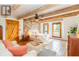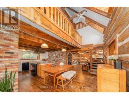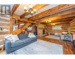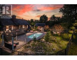 Welcome to this enchanting log home that perfectly blends rustic charm with modern comforts. Nestled on a serene one-acre lot in the rolling Caledon Hills, this beautiful property offers a peaceful country lifestyle just minutes from town. Inside you are greeted by original beamed ceilings, wide plank floors and a striking stone fireplace that serves as the heart of the home. The open living and dining areas flow together creating a warm and inviting atmosphere ideal for both everyday living and entertaining. Waking up in the spacious 2nd floor primary bedroom brings joy to each mornings as the sun peeks over the horizon in this east-facing retreat that features a private lounging area & direct walk-out access to the backyard pool, garden & trees. The third-level loft & 4th bedroom are also hidden gems, ideal as a quiet getaway spot or perfect for guest rooms. Outdoors, you'll find winding flagstone pathways, lush perennial & pollinator gardens plus a cozy fire pit for unforgettable evenings under the stars. Hobbyists and DIYers will appreciate the large detached workshop/shed offering endless possibilities for creative projects or extra storage. Originally crafted from Ottawa Valley square logs and reassembled in Caledon in 1983, this home has aged beautifully with a silver patina that blends seamlessly into its natural surroundings. And when you're ready for an adventure, quaint villages, scenic hiking trails, ski slopes, art galleries and cozy cafes are all just a short drive away. This isn't just a house - it's a place to slow down, breathe and truly feel at home. Pool has been prof maintained, opened & closed. Pool pump new in 2021. Solar controller system (pool) new in 2023. WETT inspection of Wood Fireplace passed Jan 2025. Primary heating is by propane stove with electric baseboard as backup. (id:50886)