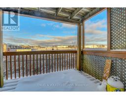 Rare end unit. Steps to Montfort & amenities. Discover the perfect blend of privacy and convenience at 21 Drayton Private. This bright, beautiful end-unit townhome offers a rare sanctuary in the city, backing directly onto the former Rockcliffe Base (Wateridge Village). The main floor welcomes you with a cozy family room that opens onto a custom-built private deck. Head up to the second level to find a spacious, sun-filled eat-in kitchen, a dedicated pantry, and loads of cupboard space. Step out from the kitchen onto the second-level balcony for your morning coffee. The open-concept living and dining area is anchored by a warm gas fireplace and gleaming hardwood floors, making it ideal for entertaining.The top level features three generous bedrooms filled with natural light and a full family bathroom. The home features a mix of hardwood, laminate, and carpet for comfort and style throughout. Located in a prime "commuter's dream" neighbourhood, you are walking distance to the Montfort Hospital, the National Research Council (NRC), and the CSIS campus. Excellent access to public transit. The St. Laurent LRT station is just a short connection away. Enjoy nearby shopping at St. Laurent Shopping Centre, groceries on Montreal Road, and the recreational pathways along the Aviation Parkway. Available immediately. Don't miss this opportunity to live in a quiet, private enclave minutes from everything. (id:50886)