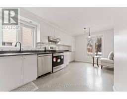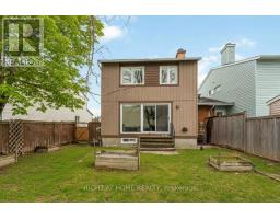 Fantastic semi-detached family home attached only by the garage, offering comfort, privacy, and an unbeatable location. Enjoy no rear neighbours, a fully fenced backyard, and beautiful interlock landscaping in both the front and back. Step inside to find new hardwood floors throughout the main and second levels, an updated full bath and powder room, and all PVC windows for improved efficiency. The bright eat-in kitchen is perfect for everyday meals, while the dining room opens seamlessly to a warm and inviting living room featuring a wood-burning fireplace and large windows overlooking the private yard. The fully finished basement adds valuable living space, complete with a 2-piece bathroom, a versatile den, and abundant storage options. Located on a quiet, family-friendly street, this home is within walking distance to several schools, shopping, parks, the recreation complex, and public transit just steps away. A wonderful opportunity to own in a convenient and desirable neighbourhood. Some of the photos are virtually staged. (id:50886)