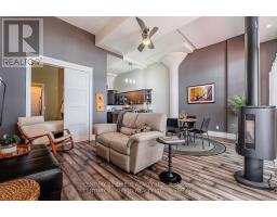 $613.05 MonthlyThis second-floor suite features soaring 12-foot ceilings, a cozy gas fireplace, and an airy open-concept layout that's filled with natural light thanks to an entire wall of windows and patio doors leading to your private balcony complete with natural gas BBQ hookup. The kitchen is both functional and stylish, featuring granite countertops and a smart layout perfect for cooking or entertaining. The primary bedroom includes a spacious walk-in closet with direct access to a beautifully finished ensuite bath complete with ceramic walk-in shower. A second bedroom and guest bath round out the space, ideal for hosting visitors or setting up a home office. The building offers a range of convenient amenities including a fitness room, rooftop terrace with St. Lawrence River views, and a peaceful library lounge. Plus, everyday essentials like a bistro, pharmacy, and medical office are just a short stroll away. If ease of living and walkable amenities are what you're after, Unit 210 is well worth a look. (id:50886)