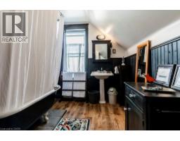 Outstanding transformation inside & out with no stone left unturned! Tucked away at the base of the escarpment, this thoughtfully renovated 2-storey, 2-bedroom, 1-bath home is full of character, creativity, and modern convenience. From its clever storage solutions to its private “secret garden” patio, every detail has been carefully designed to make the most of both space and style. Step inside to discover an updated kitchen that’s as functional as it is beautiful, featuring built-in banquette seating with custom cushions (and hidden storage!), a pull-out butcher block for added prep space, subway tile backsplash, and generous cabinetry. The living room offers a walkout to a stunning interlock and flagstone patio — a private oasis perfect for morning coffee or evening gatherings — w/ built-ins & glass display shelves to add ambiance and charm. Upstairs, the primary bedroom delights with a hidden “secret closet” concealed behind a bookshelf, while the elegant 4-piece bathroom features a classic clawfoot tub and pedestal sink for a touch of vintage luxury. Additional highlights include two-car private parking — a rare and valuable find — and a unique sense of privacy and tranquility. This one-of-a-kind home offers the perfect blend of historic charm, smart updates, and whimsical details. This Corktown gem is steps to St. Jo’s, the GO & amenities. A must-see for those seeking something truly special. (id:50886)