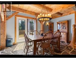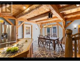 Discover the warmth and charm of this beautifully crafted post and beam home, nestled on a serene 4.5-acre country lot just minutes from Devils Glen Ski Club and a short drive to Collingwood. With 3 bedrooms and 2+ bathrooms, this home offers the perfect blend of rustic elegance and modern comfort. The open-concept kitchen and dining area seamlessly flows onto a spacious deck, where you can relax and take in the expansive country views. Attention to detail is evident throughout, radiant-heated slate floors, elegantly appointed bathrooms, and a thoughtful layout that invites both entertaining and quiet retreat. Unwind in the cozy living room with gas fireplace, or gather in the family room featuring a wood stove and direct walkout for starlit evenings under the clear country sky. A separate double garage offers additional functionality with up to 1,000 sq ft of finished living space above, perfect for a studio, guest suite, or income potential. Whether you're seeking a year-round residence or a weekend escape, this property offers privacy, natural beauty, and timeless craftsmanship in an unbeatable location. (id:50886)
