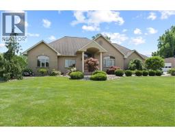 First time on the market for this custom-built brick ranch, where luxury, comfort, and craftsmanship meet on just under an acre of beautifully landscaped grounds. Proudly owned and lovingly maintained by its original owner, this exceptional home showcases premium materials and timeless design throughout. This 3+2 bedroom, 3 full bathroom residence includes a spacious primary suite with a private ensuite, offering the perfect retreat for relaxation and comfort. Inside, you’ll find inlay wood windows and doors with aluminum cladding, all equipped with Pella blinds, along with rich oak flooring and trim and elegant porcelain tile finishes. The bright and inviting living room features a vaulted ceiling and gas fireplace, while the formal dining room provides an elegant space for entertaining. The kitchen also includes a second eat-in space and opens to a balcony overlooking the serene backyard. The walkout basement provides remarkable versatility, ideal for multi-generational living or extended family. It includes a second full kitchen, two additional bedrooms, a large family room with a natural fireplace, games room, and bathroom, creating a complete lower-level suite. Additional features include in-floor heating on both levels, a walk-in cooler, epoxy-coated garage floor (2024), and a 50-year shingle roof with ridge venting for lasting peace of mind. Every inch of this property reflects thoughtful design and meticulous care. With its rare combination of luxury finishes, functional layout, and stunning landscaped grounds, this home is a true masterpiece ready for its next chapter. (id:50886)