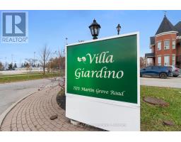$763.91 MonthlyWelcome to Villa Giardino Condo - Offering a Great Living Experience in the heart of Woodbridge, this larger condo is located in Vaughan Grove community and is priced to sell! Low property taxes, LOW MAINTENANCE FEES INCLUDE ALL UTILITIES (Heat, Hydro, A/C and Water) Bright and Spacious 2 Bedroom, 2 Bathroom suite, features open concept eat-in kitchen, a large living area with newer sliding glass door that walks out to your private balcony. Both Bedrooms are spacious with ample closet space, Primary bedroom has its own ensuite bathroom and walk-in closet. Ensuite laundry with stackable washer/dryer, sink, and linen closet. Includes a locker and visitor parking has ample spaces. Outdoor surface level parking space is available to residents that do not have an underground parking space. This beautiful condo is exceptionally maintained and offers a picturesque villa-style courtyard with a beautiful water fountain, park benches, Patio table and chairs, manicured lawns, bbq area, and party room for large family gatherings that seats up to 150 people. Library and Gym with an inviting Common Lounge area and Fireplace. Prime location close to all amenities, including transit, shopping, restaurants, walking trails behind the sport fields, sport facilities and easy access to Hwy's 407, 427, 400, and 7. The Building Is Well-Suited for Residents Of All Ages, Including Families, First Time Buyers, Investors, Retirees & Seniors! Must See! **Disclaimer: Some rooms are shown with virtual staging** (id:50886)