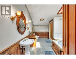 At over 4000 square feet, this amazing century home has the space, character and country charm that you have always dreamed of. Up to 6 bedrooms, 4 full bathrooms, 3 living rooms, 4 decks/porches, a sunroom, an unfinished basement, and a 32x36 shop on a beautiful treed 167x199 lot with quick access to hwy 401. The massive main floor features a charming main living room with a gas fireplace and brick hearth, a custom kitchen with enough appliances to cook for an army, a cozy den with a natural fireplace, a huge primary bedroom with loads of closet space and a 3pc ensuite, a 5pc main bath, laundry, a kitchenette, office, formal dining room, 2pc bath under the stairs, a side mudroom, sunroom off the kitchen, and a dazzling 3rd living room with an alluring vintage vibe. The second floor offers 4 spacious bedrooms, lots of closet space, and 2 full bathrooms. The home is adorned with fantastic woodwork throughout, several stained glass windows and boasts 3 covered porches all with their own unique views over the property and countryside. Geothermal heating and cooling with a separate forced air gas furnace to augment heat when the weather is especially cold. The shop has its own hydro panel, full concrete floor and a handy storage mezzanine. The home can be easily divided into 2 units making it an ideal fit for a multi-generational family, income property or for those who love to host while giving their guests their own space. It's one-of-a-kind, as spacious as it gets and it has a magical ambiance that's hard to find. Call today, book your viewing, and get ready for an enchanted experience like no other. (id:50886)