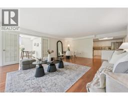 $1,286.02 MonthlyWelcome to boutique living at Village Gate, in one of Burlington’s most sought-after Lakeshore areas. This 2 bed plus den, 2 bath corner suite offers over 1,500 square feet of thoughtfully planed living space with a quiet treed setting and peaceful views of the manicured grounds, Rambo Creek and Lake Ontario. Designed for style and functionality, the updated kitchen features quartzite counters, stainless-steel appliances, glass subway tile backsplash, under cabinetry lighting, a moulded tray ceiling, pot lights, and a breakfast bar. The open concept living and dining areas enjoy eastern exposure, filling the space with natural light through the tree-lined windows and the generous layout grants enough room for multiple seating areas to entertain comfortably. An adjacent den with French doors, California shutters and glimpses of the lake provides an ideal space for a home office, reading room or dinette. The primary suite is equipped with a large walk-in closet, custom organizers and a 5-piece ensuite with marble vanity, his and her sinks, standalone shower, and tiled jetted tub. Additional highlights include a spacious second bedroom, a 3-piece bath with glass shower, side by side in-suite laundry, a front coat closet, custom walk-in pantry, built-in closet organizers, and a separate storage locker. Residents enjoy the benefits of underground parking, ample visitor parking, and condo fees inclusive of all utilities, cable, and internet. The updated lobby, meticulous grounds, well-managed community and quiet atmosphere from its exclusive 39 suite capacity make living at Village Gate a pleasure. Located within walking distance to downtown shops, cafés, restaurants, Spencer Smith Park, the waterfront trail, hospital, and major highways, this residence offers a refined, low-maintenance lifestyle with every convenience at your doorstep. (id:50886)