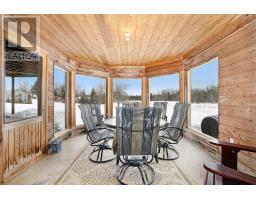 Rare Executive Custom-Built Home Located on the South Branch of the Rideau River, this exceptional home offers approx 4800 square feet of space on a stunning 7+ acre waterfront property. Designed to capture breathtaking south-facing views, this home is perfectly positioned to enjoy spectacular morning sunrises and nature viewing from nearly every room. The main level boasts 2,400 square feet of open-concept living with vaulted ceilings in the great room and spacious eat-in kitchen and dining area and access to a four season sunroom. The kitchen features granite counter tops, cooktop and built in oven with generous cupboard space, including access to a butlers pantry .The main area also boasts a large primary suite with a walk-in closet and a 5 piece ensuite with a built-in vanity, . Additional rooms on the main level include 2 additional bedrooms , laundry room, mudroom and a 2 piece bathroom. A grand curved staircase leads to approx 1500 square feet of finished living space which includes a large rec room with a kitchenette/bar area, 2 well sized bedrooms, and a 5 piece bathroom which makes this area a self contained living space for relaxation or entertaining. Additional mechanical and Storage room .A highly efficient ground-source geothermal heating and cooling system combined with lower level in-floor radiant heating ensures energy efficient comfort all year round. The attached oversized two-car garage is insulated and provides inside access to both upper and lower levels, while a detached single car garage offers additional storage and workshop space. Outdoor living is just as impressive with a generous upper deck and a lower patio area overlooking the South Branch of the Rideau River. This rare executive home seamlessly combines energy efficiency and natural beauty, making it a truly exceptional find. . To fully appreciate the property make sure to view the attached videos (id:50886)