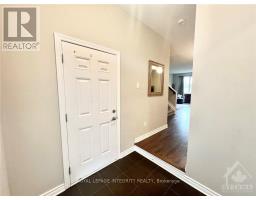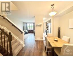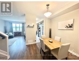 Discover this beautifully maintained Minto Haven townhome, built in 2019 and perfectly located in the heart of vibrant Stittsville. The main level offers a bright, open-concept layout featuring a modern dining room accent wall, a spacious kitchen island, contemporary backsplash, and stylish upgraded flooring throughout. Upstairs, you'll find three generous bedrooms, including a primary suite with a walk-in closet and a sleek private ensuite, along with a spacious, neutral-toned main bathroom.The fully finished lower level extends your living space with a cozy family room complete with a gas fireplace, a convenient laundry area, and plenty of storage. Enjoy added privacy and tranquility with no rear neighbours, creating a peaceful backyard setting.Ideally situated close to shopping, restaurants, parks, and transit, this home offers modern comfort, everyday convenience, and an exceptional location-move in and enjoy! Some photos were taken before the current tenant moved in. (id:50886)