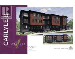 Welcome to Carlyle B - a stunning 2-bedroom, 2.5-bathroom stacked townhome-style condo, perfectly blending urban convenience with natural tranquility. Tucked into the serene Brigadoon Woods, this thoughtfully designed home offers a spacious open-concept layout ideal for both relaxing and entertaining. Step inside to discover generous-sized bedrooms, including a primary suite with ample closet space and a private bath. The balconies extend your living space outdoors, offering a peaceful retreat surrounded by mature trees and greenery. Enjoy the best of both worlds — nature at your doorstep and all amenities within easy reach. Located close to top-rated schools, shopping, dining, and with quick access to major highways, this home offers exceptional lifestyle and value. Whether you're a first-time buyer, downsizer, or investor, this beautifully maintained condo is a rare opportunity in a sought-after community. Don't miss it! PLEASE VISIT - (((Sales Centre is located at 35 Trillium Drive, Unit 1 in Huron Creek Developments building - lower level ))) (id:50886)