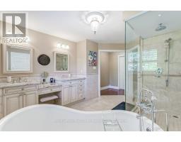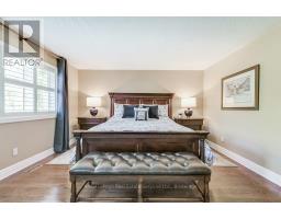 A wonderful family home located in the Brays Lane enclave of Glen Abbey. The Chamberlain by Mattamy homes, a sought after model of approx 3150 Sq Ft. A winding walkway leads to the custom double front doors and into the roomy Foyer. To the left is the Formal Living Room with electric fireplace and a bay window. The Dining Room is large enough for a full dining suite.The eat-in Kitchen has been completely renovated with high end appliances including a Wolf six (6) burner stove, custom backsplash, porcelain tile flooring and upgraded fixtures and cabinets. To the right of the Foyer is the Laundry Room, Powder Room and convenient Den or Office. There is a wood burning fireplace , large bright window and wainscotting in the main floor Family Room. Four Bedrooms on second floor, including a large Primary Bedroom with spacious 5 piece ensuite Bathroom, cosy sitting area and large organized walkin closet. All 4 bathrooms have been completely renovated. There are heated floors in the two upper Bathrooms.Solid oak floors throughout the main and second floors and engineered hardwood in basement. California shutters throughout. Upgraded wood trim throughout the home: six inch baseboards, crown moulding and door frames. Partially finished basement with spacious Recreation Room, exercise room and plenty of storage. New Carrier heat pump and furnace. The garage doors and Pollard windows and doors have been installed. Walkout from Kitchen to private fenced garden, two tiered cedar deck of almost 400 sq. ft., mature trees, manicured landscaping, garden shed and inground irrigation system. This home has been very well maintained and is in move in condition. Close access to schools, parks, trails, QEW and GO Train Station. (id:50886)
