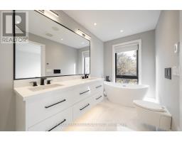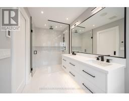 Stunning contemporary custom built home on a great street in Alderwood. Built in 2021, this home features exceptional style and craftsmanship with no expenses spared- move in and enjoy. 2124 square feet of above grade luxury. Designer/ Aluminum windows throughout the home including a custom 2 panel door that opens up to deck/yard. The main floor features white oak hardwood flooring throughout, designer powder room with a chevron marble mosaic floor, raised (above garage) separate dining or family room, glass railings and custom *Mono Beam/ floating stairs. The kitchen/living area features 12 foot ceilings, custom millwork and cabinetry (*to ceiling*) with quartz counters and integrated Jenn-Air appliances. The upper level features three bedrooms, all featuring it's own and separate washrooms (see floorplan). The primary bedroom features a stunning 5-piece, heated floor ensuite with acrylic tub and curbless shower and a custom walk-in closet. Large windows throughout the upper level including a skylight and large laundry closet with sink. The lower level is equipped with heated tile flooring throughout, 9 foot ceiling, built-in/rough in for home theatre/surround sound, gas fireplace and 3 piece washroom with large shower, large closets and large storage area/mechanical room showcasing the level of building quality. Cold room with sump-pump. This home features custom built-in closets on every level, *built-in audio speakers on main floor, primary bath and outside deck* 200 amp service, car charge ready, smart switches, recessed lighting and much more. Garage plus park 2 cars on driveway. Stone walkway and patio. Large composite deck with glass railing overlooking the large/clean yard. Fully fenced. *Take the Virtual tour! Conveniently located in the centre of the great community of Alderwood. Close to great schools, minutes to shops/amenities, restaurants, highways, parks, cycling/walking trails and the Lake. Quick access to TTC transit and Go station & more! (id:50886)