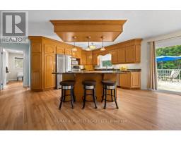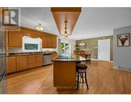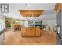 Welcome to this beautiful raised bungalow featuring four spacious bedrooms and an oversized double-car garage. The tiled entranceway leads to the main floor with newly refinished hardwood floors and a bright, open-concept layout. The modern kitchen offers a centre island, downdraft cooktop, stainless steel appliances, and flows seamlessly into the large dining area and sun-filled living room with expansive windows. Two generous bedrooms with wall-to-wall closets and an updated four-piece bathroom complete the main level. Enjoy peace of mind with newer vinyl windows, a durable steel roof, and a newly installed patio door leading to the large deck with aluminum railings. Inside access to the oversized double garage adds everyday convenience. A hardwood staircase leads to the fully finished lower level, featuring a spacious rec room with large windows, two additional bedrooms, including one oversized, and an updated three-piece bathroom. This level also includes newly installed luxury vinyl flooring, a full laundry room, and plenty of storage space. Additional features include 200 amp service, a high-efficiency natural gas furnace, central air conditioning, and fresh paint throughout. Additional oversized detached garage for workshop, vehicles or toy storage. Close to parks, schools and easy access to main road. (id:50886)