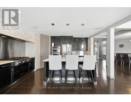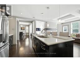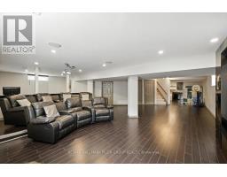 Discover this spectacular 4-bedroom Cardel home, perfectly situated in the popular community of Notting Gate. This home is the perfect blend of modern luxury & timeless charm. From the moment you step into the foyer, you'll be greeted by impeccable craftsmanship & high-end upgrades. A dedicated home office at the front of the house offers inspiring views of the neighbourhood. The open-concept main living area is the heart of this home, tailor-made for entertaining & family gatherings. A generous dining area flows into the impressive great room, featuring soaring 2-storey windows & stunning 2-sided fireplace that connects to a versatile flex space beneath an elegant, coffered ceiling. The chef-inspired kitchen looks like it belongs in a magazine, showcasing dark wood cabinetry, white quartz countertops, oversized island w/breakfast bar, walk-in pantry, stainless steel appliances, & gas cooktop framed by stone surround. Upstairs, the split staircase leads to 2 distinct bedroom wings. One bedroom is ideal for guests, complete w/private 3pc ensuite. The other wing offers 2 generously sized bedrooms w/ ample closet space & neutral full bath. The luxurious primary suite is a true retreat. It features 2 walk in closets, 5pc ensuite w/corner soaker tub, oversized glass shower, dual sinks, & separate water closet. The finished LL boasts rich engineered hardwood flooring. Designed for comfort & versatility, it includes a bar area w/2nd dishwasher & bar fridge, a playroom or hobby space, a home theatre w/tiered seating, dedicated gym area, & a gorgeous full bathroom. Step outside into your private East-facing backyard oasis, fully fenced & ready for summer enjoyment. The interlock patio offers ample room for both dining & lounging, while the outdoor summer kitchen & BBQ area sits under a large pergola for year-round use & protection from the elements. This home is ideally located closet to top-rated schools, scenic parks & walking trails, & convenient shopping & amenities. (id:50886)