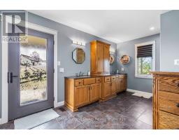 Set on 51.2 acres just outside Owen Sound, this stone bungalow offers the kind of space and setup that works for real life, whether you're looking for privacy, hobby space, or multi-generational living. Inside, the main floor is bright and well laid out, with a vaulted ceiling in the living room, a connected kitchen with island and plenty of storage, and a separate dining area that works for everyday meals or family get-togethers. Off the attached double garage, there's a practical mudroom and walk-in closet, plus a laundry room that doubles as a pantry. You'll find two bedrooms on this level, including a spacious primary suite with a walkout to the back deck, full ensuite bath, and plenty of closet space. A second full bath is just outside the second bedroom, ideal for guests or kids. The finished lower-level walkout adds real flexibility, with two more bedrooms, a full bath, a large living area, and a kitchenette. It's set up perfectly for extended family, an in-law suite, or even rental potential. There's also a cold room, tons of storage, and a walk-up to the garage for easy separate access. Outside is where this property shines. A heated 30x60 workshop with in-floor heat and water is ideal for trades, hobbies, or a home-based business. There's also an 86x36 barn with a concrete floor and hydro, plus extra covered space off the back and side. A 16x28 run-in offers shelter for animals if you're thinking of pasture use. The land is a mix of workable fields and fenced areas, with approximately 30 acres workable, 22 of which are systematically tiled. There are 5 acres of fenced pasture and 10 acres currently used for hay. Located on a paved road with frontage on two sides, it's just minutes to Harrison Park and all the amenities of Owen Sound. If you're looking for a place that offers space, function, and a quiet setting that's still close to town, this one checks all the boxes. (id:50886)