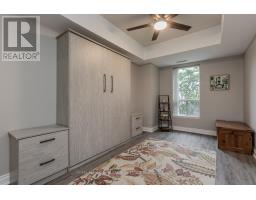 Welcome to this impeccably renovated suite in the highly desirable "The Balmoral" community. Offering over 1,200 square feet of thoughtfully designed living space, this luxurious 2-bedroom, 2-bathroom condo comes complete with 2 underground parking spaces and a convenient storage locker. From the moment you step inside, you'll appreciate the open-concept layout--an ideal blend of style and functionality. The spacious kitchen seamlessly flows into the dining and living areas, perfect for entertaining or relaxing. The kitchen is a true showstopper, featuring quartz countertops, stainless steel appliances, under-cabinet lighting, a beverage fridge, a breakfast bar, a pantry with slide-out drawers, and custom cabinetry throughout. The primary suite offers a peaceful retreat with it's private west-facing balcony, a walk-in closet with custom built-ins, and a newly renovated custom 3-piece ensuite complete with a glass shower, vanity, and toilet. The second bedroom is equally versatile, currently outfitted with a modern Murphy bed (negotiable), allowing it to double as a guest room or home office with direct access to a stylish 3-piece main bathroom. Additional highlights include a spacious in-suite laundry room with extra storage, soaring 9 ceilings, custom built-in closets, recessed lighting, and neutral décor throughout. Enjoy peace of mind with condo fees that even include Bell Fibe high-speed internet & TV! Building amenities enhance your lifestyle with a party room, exercise room, hobby space, car wash bay, and BBQ areas. Ideally located just minutes from Tyandaga Golf Course, shopping, the Niagara Escarpment, major highway access, and vibrant downtown Burlington. This turn-key suite offers refined living in a prime location don't miss your opportunity to call it home! (id:50886)