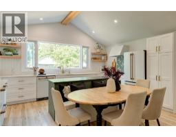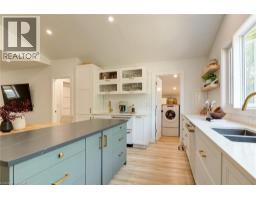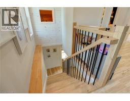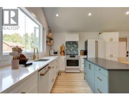 FULLY RENOVATED ON 0.2 ACRES! Welcome to 22 River Street, a gorgeous 3 Bed 2 Bath detached home extensively updated in the last few years. Located in quiet Bloomingdale, as you arrive at the property you will notice the charming full width covered front porch (2024), new siding and new exterior lighting (2021). Heading inside, prepare to be impressed – greeting you is an open concept bright and airy main living area with a 10’6” foot cathedral ceiling and beautiful views to the outdoors. The stylish kitchen deserves its own mention with extensive cabinetry (2021), quartz countertops (2021 & 2024), a 6+ foot island, two separate sinks, and a full suite of GE Café appliances including double beverage fridge drawers (2021). Other features on the main level include a main floor primary bedroom complete with a walk-in closet and 5-piece ensuite bath (2021), new flooring (2021), pot lights (2021), main floor laundry (2021), and a solid oak staircase with iron balusters (2022). Heading upstairs you will find an additional full bathroom (2021), new flooring (2021), two bedrooms, flex space, and a special play nook for children or pets. The basement level is partially finished offering additional flex space and storage. Outdoors is an entertainers dream with a hot tub (2022), large deck (2022), and fenced yard with plenty of room to play. A 19’ x 25’ garage with hydro is ideal for storage or perhaps a large workshop. Additional features of this property not immediately noticeable are the new iron water filter (2024), owned hot water tank and water softener (2021), all new interior drywall, doors and trim (2021), and Smart Home system that can program your lighting, thermostat and door locks via an app. Lastly, the location of this home is fantastic, just a few minutes drive into Waterloo for all amenities while providing the peacefulness of country life. Don’t miss the virtual tour! (id:50886)