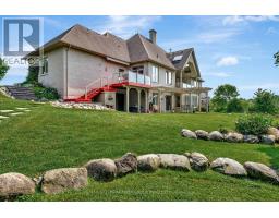 Tucked into one of Brightons most desirable areas, this custom-built executive home spans a rare double lot and is designed for living large, with every detail thoughtfully considered. Totalling over 5000 sqft of finished living space with 4 beds, 4 baths, it is truly one of a kind! Step onto the interlock walkway and into a grand foyer that opens into a stunning great room, where soaring ceilings, gas fireplace w/ dimmer light, hardwood flooring, and cherry built-in entertainment wall set the tone for the homes elegant flow. The main level offers seamless transitions between the formal living room, dining room complete with walkout to the elevated, covered deck overlooking protected land and an executive maple & cherry kitchen outfitted w/ granite counters, centre island, gas cooktop, double wall ovens, walk-in pantry & breakfast nook w/ second walkout to the uncovered, upper deck w/ retractable awning. The serene primary suite featuring a water closet, glass walk-in shower, whirlpool tub, custom double-sink vanity & spacious walk-in closet has you relaxing in luxury. A main-floor office w/ extensive built-ins overlooks professionally landscaped grounds w/ 7 zone, in-ground sprinkler system for easy maintenance, while the main floor laundry room is what dreams are made of. A wide staircase leads to the lower level which is fully finished w/ walkout! Expanding your living space and lending to a in-law suite or any hobby, this level features a kitchenette, 3 bedrooms, 2pc powder room & 4pc bath, cozy 4-season sunroom currently used as a second office, plus a cedar closet, cold cellar, & a walkout workshop built under the garage. Heated floors run throughout the entire lower level, as well as inside the oversized 2-car garage w/ inside entry. Built with quality & care, the features are extensive. Just minutes from Brightons amenities, trails, and the shores of Presquile Bay, this is a home where thoughtful design and natural beauty meet- ready for your next chapter. (id:50886)