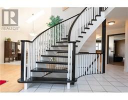 Welcome to 22 Tuscani Drive, Stoney Creek. This impressive custom-built 2-storey home offers 4+1 bedrooms and 3.5 bathrooms, ideally situated in a desirable, family-friendly neighbourhood. From the beautifully landscaped front lawn to the double driveway with elegant raised aggregate, pride of ownership is evident at every turn. Step inside to a grand foyer highlighted by a striking staircase. The open-concept living and dining area is filled with natural light from skylights and features a walkout to a private back deck — perfect for indoor-outdoor living. The spacious kitchen offers room for casual dining at the breakfast bar overlooking the cozy family room. A convenient 2-piece bath and main floor laundry with inside access to the garage enhance functionality for busy families. Upstairs, you’ll find a generous primary suite complete with a 4-piece ensuite and walk-in closet, along with three additional bedrooms and a full 4-piece bath. The finished basement is an entertainer’s dream, featuring an expansive family room ideal for games or movie nights, an extra bedroom or games room, a 3-piece bath, and a bonus room. The separate entrance from the garage to the basement provides excellent potential for an in-law suite. Enjoy summer evenings in your private backyard retreat, complete with a cozy deck — the perfect setting for relaxing or hosting movie nights under the stars. Close to the QEW, schools, shopping, and recreation. Don’t miss making this your home! (id:50886)