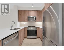 Welcome to this thoughtfully designed 1+den suite at 15 Watergarden Drive, offering 615 sq. ft. of modern living space. The open-concept layout flows seamlessly from the kitchen to the living and dining areas, complemented by large windows that fill the home with natural light.The kitchen features sleek wood-toned cabinetry, quartz countertops, a built-in breakfast bar, and stainless steel appliances, creating both function and style. A versatile den provides the perfect option for a home office, study, or guest space. The bright bedroom includes a generous closet, while the spa-inspired 4-piece bathroom showcases modern tiling, a deep soaker tub, and a contemporary vanity. In-suite laundry adds convenience. Step outside to your private balcony, offering an extension of your living space and room to unwind. Residents have access to a full suite of amenities, including a 24-hour concierge, fitness centre, indoor pool, party room, guest suites, and rooftop terrace. Ideally located near shopping, dining, parks, and major commuter routes, this home combines comfort with convenience. (id:50886)
