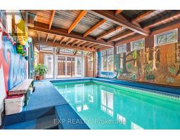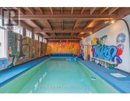 Welcome to 220 Ancaster Avenue - tucked into the heart of Woodpark, a west-end neighbourhood where quiet streets, urban convenience, and natural beauty all come together. Just steps from the Ottawa River Parkway and minutes to Westboro, this location offers the perfect blend of access and escape. Step inside to a bright, open main floor where large windows fill the living and dining areas with natural light - ideal for entertaining or everyday living. The kitchen features durable countertops, abundant cabinetry, and a granite breakfast bar for casual mornings, flowing effortlessly into the formal dining area and inviting living room. A walk-out to the backyard adds to the home's functionality. The unique split-level design offers space for everyone. Just a few steps up, you'll find three spacious bedrooms, a full bathroom, and a versatile loft perfect for a home office or reading nook. The top level is a true retreat - featuring a private primary suite with its own balcony, cozy fireplace, walk-in closet, and ensuite bathroom. The lower level expands your living space even further, with a generous family room, oversized windows, an electric fireplace, a powder room, laundry area, and a bonus room that can serve as a fifth bedroom or office. And the showstopper? A private indoor pool - your very own year-round wellness escape. From there, step out to a beautifully landscaped backyard with a deck, patio, gazebo, and lush green space - perfect for summer gatherings or quiet evenings. The finished basement adds a rec room and ample storage, making this home as practical as it is charming. Walkable to Carlingwood Mall, Farm Boy, and Westboro Village, with both New Orchard and Lincoln Fields LRT stations close by for a quick downtown commute. Britannia Beach, Parkway bike trails, and top schools are all nearby. 220 Ancaster Avenue isn't just a place to live - it's a place to thrive. (id:50886)