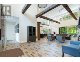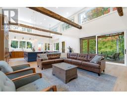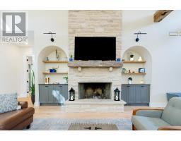 Welcome home to this gorgeous 5 bedroom, 4 bath, New Build. Tucked away and hidden from the road, situated just 2 minutes from the beaches of Lake Ontario and Historic NOTL. Feels like you're living in a Hallmark movie! 18 ft ceilings welcome you into the front entrance with a floor-to-ceiling custom stone wood-burning fireplace, inviting you in to sit back and relax. A seamless flow from the expansive open concept main living room, kitchen and dining room, accented brilliantly, by 6 authentic Niagara barn beams and an abundance of windows all around. Enjoy your morning coffee, looking out toward your own enchanting private forest, as you walk out onto your back patio (with heated floors), through the 12 ft kitchen patio doors. Comfort and elegance are all wrapped up in every detail of over 5500 sq ft of living space in this stunning home. The spacious, primary bedroom boasts a stunning 6 piece en-suite (double-head shower, bathtub, 2 sinks), a spacious walk-in closet, and 10 ft doors leading to your walk-out patio and private hot tub. In-floor heating throughout every room, basement, front and back porch. 3 Car garage, (with one drive through bay), wired-in for EV hookup. Highly detailed kitchen with stainless steel appliances, customized drawers and cabinets with quartz counters leading into a private butler's pantry (complete with its own oven, sink and dishwasher). Main Floor Laundry, office and 2 piece powder room. ICF foundation walls going half way up the house ( for extra temperature control). The upper level has 2 bedrooms with a shared 4 piece bathroom, and an open sitting/music room. The lower level with 2100 sq ft, includes a large rec room, 2 bedrooms, a 3 piece bath and the mechanical room. Almost an acre backing on to forest and a river. The Perfect Location. This gem is a rare find, in the heart of Niagara wine country. The perfect layout for large family gatherings or a cozy night with the kids. Call your REALTOR today to view this stunning home. (id:50886)