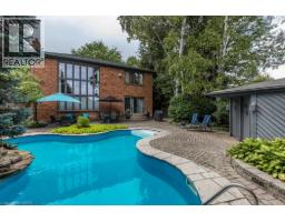 A home of classic distinction - 223 Briar Hill Crescent is a timeless family residence. Its stately brick façade, arched windows, & gabled roofline showcase refined Colonial-inspired architecture that feels both elegant & welcoming. Thoughtful updates, including a double garage and a beautifully landscaped front entry enhance its curb appeal in a mature, tree-lined setting. Inside, the traditional floorplan was designed with both living & entertaining in mind. The sunken living room offers a warm welcome, while the dramatic great room impresses with open-to-above ceilings. The formal dining area provides the perfect setting for family gatherings, while the updated kitchen & convenient mudroom adds everyday functionality. Upstairs, 4-bedrooms, 2-full baths, plus a dedicated home office provide the versatility that families need. The lower level expands the living space with a large rec room, den, full bath, & abundant storage. Outdoors, the fully fenced yard is a private retreat surrounded by mature trees. An inground pool with waterfall feature, pool shed/change room create the perfect summer escape, while interlock pathways & patio space complete this inviting setting. Ancaster Heights is a coveted neighbourhood, known for its executive homes, and quiet, family-friendly atmosphere. Minutes to the Ancaster Village, Meadowlands shopping center, & top-rated schools, it combines convenience with upscale charm. Easy access to HWY 403, and the LINC, makes it a breeze for commuters. (id:50886)