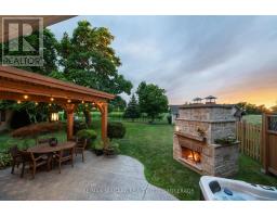 This breathtaking country retreat is just a three minute drive to the QEW, offering the perfect balance of rural tranquility & a convenient location. Nestled on a stunning property with beautiful vineyard views & no rear neighbours, this one-of-a-kind home delivers privacy, space, and year round beauty. Inside you'll find 4 spacious bedrooms & 4 bathrooms, including a primary suite complete with a walk-in closet & a beautiful ensuite. One of the bedrooms is situated above the attached garage, & includes its own separate entrance, & a dedicated split heating & air conditioning unit-ideal for guests or a private office. The main living room is bright & welcoming, with large east & west facing windows that flood the space with natural light throughout the day, along with a gas fireplace. Built in speakers throughout the house & outside. Downstairs, the thoughtfully finished basement, complete with heated floors, offers a rec room with a cozy woodstove & a family room, providing a versatile space. There is also a laundry room, 3 pc bath, & a large cold cellar. Car enthusiasts & hobbyists will appreciate the 2 separate double-car garages, both equipped with heated floors. The detached garage also features a convenient 2 pc washroom, a spacious insulated loft above for potential additional living space if finished, & thoughtful additions like a dog/chicken run and an attached little house with its own heater for chilly winter nights. Outdoors, the home continues to impress with a large front porch where you can watch the sunrise, a composite deck & hot tub ('23) with stunning vineyard views, an outdoor fireplace & a wood-fired pizza oven-perfect for entertaining. A peaceful fish pond sits adjacent to the patio, adding to the sense of serenity and charm. Whether you're enjoying a quiet morning coffee on the front porch, or sitting by the fire with your family & friends, this home offers a chance to enjoy country living at its finest. Luxury Certified. (id:50886)