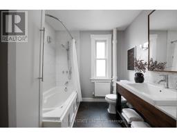 Tucked on one of Beaconsfield Village's most beautiful & peaceful stretches, bookended by a one-way off Dundas W & Afton before extending to Queen W, 224 Lisgar sits beneath a canopy of mature maples on a street lined with storied façades. Past the black wrought-iron gate & lush front landscaping, a storybook exterior opens to a charming vestibule with original stained glass & century detailing intact, setting the tone for what's inside: a calm blend of heritage & modern design. Hickory engineered floors run underfoot, layered with a designer vinyl overlay to protect against pet claws, toy trucks, dinner parties & everyday life in between. Ten-foot ceilings & end-of-row positioning bring in extra light along the north wall, shaping a space that feels rooted. The dining room welcomes a full table of guests with ease while the living area invites you to linger by the fire long after dinner ends. The home's tankless Navien system offers efficient, consistent & whisper-quiet comfort, circulating warm water through radiators for even heat that feels soft & natural while improving air quality & reducing energy use. A beautifully renovated kitchen follows with caesarstone counters, smart storage, a gas stove-top, built-in oven & an airy overlook to the sunken family room. Beyond, double doors open to a private low-maintenance backyard perfect for entertaining or unwinding. Upstairs, three bedrooms merge period charm with contemporary ease with tall baseboards, original hardware & a bright modern four-piece bath offering every comfort their 1900's counterparts could only dream of. The lower level offers a third living space ideal for movie nights or quiet reflection after a wellness ritual in your own spa zone. Complete with a sauna & steam shower, this is where you restore balance, boost circulation & melt away the day's stress. For those drawn to spaces with history & intention, this home offers architectural charm, modern ease & a perfect West Queen West location. (id:50886)