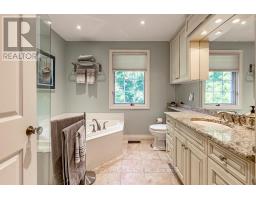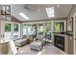 Sprawling 3,873 sq.ft. family home on a 150' x 200' estate lot on one of Burlington's most sought-after streets! Located in Tuck School district and steps to the lake and Paletta Park! Custom kitchen with granite, stainless steel appliances (including gas cooktop), island, pot lighting and walk-out. Sunroom with vaulted ceiling, gas fireplace, heated floor and walk-out to a stunning professionally landscaped yard with inground salt water pool (heated). The private and tranquil backyard setting also features an oversized patio, hot tub, pool cabana/storage sheds, gas fire pit, two gas hookups and outdoor lighting. Main level family room with gas fireplace, main level office/den, main level mudroom and laundry and a separate dining room. Primary bedroom with walk-in closet and 4-piece ensuite with heated floor. The fully finished lower level has an additional 1,937 sq.ft. of living space and features a walk-out, rec room with gas fireplace, workshop, gym, 2-piece bathroom and sauna with separate shower. Additional luxury features include hardwood floors, crown moulding, wainscoting, skylights, central vac, covered front porch, outdoor wood burning fireplace and generator that powers the entire home! Detached double garage and driveway with parking for 6 cars. 5 bedrooms and 2 + 2 bathrooms. (id:50886)