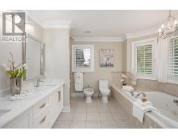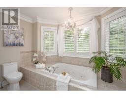 If you saw this home before, take another look. Renewed, refreshed and backing on a wooded ravine this Luxury Oakville home offers privacy, nature & elegance in one of the most beautiful and picturesque locations in all of Westmount! This 3300 +1500 sq ft 5+1 bedroom, 5 bathroom home is spectacular from top to bottom, inside & out! The outside features alone could fill this page! Premium stucco facade, covered front porch, patterned concrete driveway, side walkway & rear patio, extensive exterior lighting, an amazing wooded backyard retreat with a 2-tiered deck & fabulous covered hot tub -all fully landscaped front & back! Step inside through custom double front doors into the beautiful open concept main floor featuring a welcoming foyer, a grandiose dining room perfect for large family gatherings, a spacious main floor den, & the gourmet Chefs kitchen with granite counters, breakfast island, stainless appliances, stone backsplash, above & under cabinet & pendant lighting. The kitchen is open to the spacious family room with ornamental gas fireplace. Both rooms have amazing ravine & yard views and receive amazing light through the bay window, patio doors & large kitchen window! The main floor also features elegant archways with columns, powder room, laundry room with garage access, hardwood floors, upgraded light fixtures, crown mouldings & pot lights. Upstairs, the second floor boasts five generously sized bedrooms, each with ensuite privileges. All 5 bathrooms have stone counters! The primary suite is a true retreat & spans the entire back of the house, featuring a magnificent bedroom, walk-in closet, a luxurious six-piece ensuite, with stunning views of the yard & woods from every window! The front guest suite features a gorgeous balcony! The finished basement features a stunning recreation/entertainment rm with a working bar and also features a 6th bedroom, an office, a stunning custom finished bathroom with walk-in shower, and tons of storage and closet space! (id:50886)