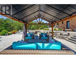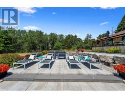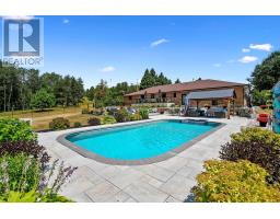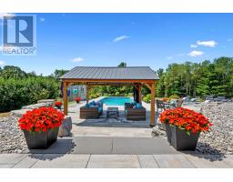Nestled in the sought-after hamlet of Grafton on over 2 acres. This impressive updated bungalow offers a modern aesthetic w/ outdoor oasis featuring an inground saltwater pool & lower in-law with separate entrance & efficient electric heat pump w/ 3 heat zones. Over 4,000 sq ft of combined living space on both levels this home has room for all your family's needs & more. Inside, the open-concept living & dining space is bathed in natural light from large windows & anchored by a feature fireplace wall w/ brick accents, custom-built-ins, & warm wood slat details. The spacious kitchen is designed to impress, w/ rich wood cabinetry paired w/ sleek white uppers, a massive island w/ waterfall countertops, a wet bar & beverage center w/ a wine fridge, & high-end appliances including a gas cooktop & double wall ovens. A walkout to an expansive deck is perfect for entertaining. The main floor offers a tranquil primary suite w/ a custom wardrobe & a luxurious ensuite featuring a dual vanity, glass shower enclosure, & freestanding tub. Three additional bright bedrooms, a modern bathroom w/ a barrier-free shower, & a functional laundry room round out the main level. The finished lower level offers a spacious games room w/ a full kitchen & bar, rec room w/ a cozy fireplace, media zone, home gym or office nook, full bath, & an additional bedroom; this space offers endless versatility. Step outside into a private, resort-style backyard for relaxation & entertaining. The fully fenced grounds preserve breathtaking country views while offering a sense of seclusion & peace. Professionally landscaped w/ precision & care, the outdoor space emphasizes low-maintenance luxury. A generous deck creates the perfect barbecue space overlooking a lower-level patio ideal for soaking up the sun. A shaded gazebo provides a cool retreat beside the expansive inground saltwater pool. Located just minutes from local amenities, including Grafton Public School & the world-renowned Ste. Annes Spa. (id:50886)