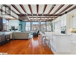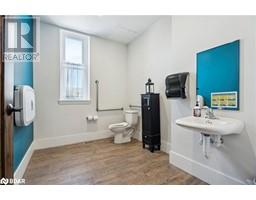 Look no further for an incredible investment opportunity situated in the heart of Midland across from the Harbour. This property offers high visibility and accessibility with plenty of nearby parking, steps to the harbourfront. The building has its beautiful classic architecture, with complete interior renovations having a modern feel. On the exterior of the building, the historic mural featuring the Brebeuf Lighthouse and plenty of parking available. The upper level is a stunning residential living space with 12' ceilings, new kitchen, fresh paint and a beautiful rooftop patio overlooking the harbourfront. The main floor has had $600,000+ invested in renovations and is perfectly set up as a medical office with many potential uses. This multi-use infrastructure is currently set up to live and work within the same building, but easily converted and split into additional units, or fully converted into a different commercial business space such as a restaurant or brewery. (id:50886)