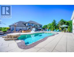 This home has it all! Stately solid stone home set on an incredible 1.5 acre estate lot on the edge of beautiful New Hamburg. A grand entrance through the double doors to a curving staircase looking into the stunning 2 storey great room, huge formal dining room that will sit a large family for special occasions, main floor office and a library. Gourmet kitchen that will keep the aspiring cook happy for years to come with an oversized island, gas range, coffee bar, double ovens and a large walk in pantry. Large mud room off of the triple car garage and a large laundry and 2 piece bath complete the main floor. Upstairs has four great sized bedrooms, each with a walk in closet and ensuite privileges. The primary bedroom features a Juliet balcony overlooking the rear yard, dual walk in closets and a recently updated spa-like ensuite. There is a fully finished suite in the basement that will work great for extended family or a nanny suite. It features a fully separate entrance, full kitchen, 2 bedrooms and plenty of living space, all completed in 2023. Although the house is off the charts for style and finish, the backyard oasis is arguably the finest feature of the property. An incredible amount of landscaping, hardscape seating and dining areas, custom fibreglass pool with heated pool house, bar, party room and hot tub will make your new home the place to entertain friends and family for years to come. New Hamburg is located half way in between KW and Stratford and offers good schools, park systems, twin pad ice surfaces, public pools and a vibrant downtown. Be sure to book a private showing today! Additional photos can be found in the virtual tour link under the "Photos" tab. (id:50886)
