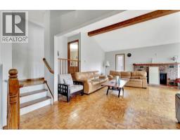 This charming backsplit sits on a spacious 3.13-acre lot with two driveways and easy access to Hwy 401, ideal for commuters or anyone wanting a bit more space without losing convenience. The home features 3 bedrooms and 3 bathrooms, offering plenty of room for families or guests. The main living area has a vaulted ceiling with exposed wood beams and a wood-burning fireplace, giving it a warm and welcoming feel. The lower level has large windows that let in tons of natural light, plus a walkout to the backyard with beautiful forest views. It’s a great space for a rec room, home office, or extra living area. The attached garage is oversized with 9-foot doors and inside entry, perfect for storing your vehicles, tools, or outdoor gear. Outside, you’ll find a gazebo for enjoying summer days. If you're looking for a home with privacy, space, and easy highway access, this home is for you. (id:50886)