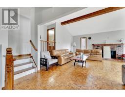 This charming backsplit sits on a spacious 3.13-acre lot with two driveways and easy access to Hwy 401, ideal for commuters or anyone wanting a bit more space without losing convenience. The home features 3 bedrooms and 3 bathrooms, offering plenty of room for families or guests. The main living area has a vaulted ceiling with exposed wood beams and a wood-burning fireplace, giving it a warm and welcoming feel.The lower level has large windows that let in tons of natural light, plus a walkout to the backyard with beautiful forest views. Its a great space for a rec room, home office, or extra living area. The attached garage is oversized with 9-foot doors and inside entry, perfect for storing your vehicles, tools, or outdoor gear. Outside, youll find a gazebo for enjoying summer days. If you're looking for a home with privacy, space, and easy highway access, this home is for you. (id:50886)