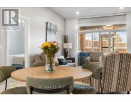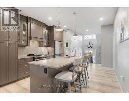 Modern Comfort Meets Country Calm in Stirling. Welcome to this stunning end-unit townhome-a rare find tucked into a quiet cul-de-sac surrounded by nature and beautiful views of the Oak Hills. Thoughtfully upgraded and meticulously maintained, this home blends modern convenience with peaceful, easy living just minutes from all Belleville and Quinte West amenities while taking in the small town charm and history in Stirling. You will notice the impressive curb appeal, with a paved driveway offering parking for four vehicles and inside entry to a fully finished garage-complete with its own water spout for easy cleaning. Step inside to a spacious foyer and an open-concept main floor with warm finishes and natural light throughout. The designer kitchen features ceiling-height cabinetry, a central island, and a built-in buffet. Enjoy extended space for entertaining during holiday meals that flows seamlessly into the dining area-perfect for gatherings. The living room features a vaulted ceiling, a cozy gas fireplace with stone surround, and large patio doors leading to a screened-in sunroom where you can unwind and take in the panoramic views. The primary bedroom offers a spa-inspired semi-ensuite with heated floors, a deep soaker tub, and a tiled glass shower. A separate den or guest room sits conveniently beside the main bath-ideal for a home office. Downstairs, the fully finished lower level offers a spacious rec room, a second built-in buffet perfect for a coffee or cocktail bar, a large guest bedroom with walk-in closet, and a full 3-pc bath. Extra features include a Kohler generator, tankless water heater (owned), gas BBQ hookup, Levolor blinds water softener and backup hydro to the garage door-plus a partially fenced yard for added privacy. Move-in ready and filled with thoughtful upgrades, this home offers the best of low-maintenance living in a quiet, sought-after Stirling neighbourhood. (id:50886)