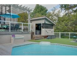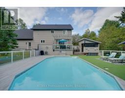Welcome to Riverview Estates one of Huntsvilles most sought-after neighbourhoods, just minutes from downtown. Nestled alongside the Muskoka River, which connects Fairy Lake and Mary Lake, this community offers both convenience and a true Muskoka lifestyle. This charming two-storey, four-bedroom, four-bathroom home has been lovingly maintained and thoughtfully updated. A granite stone walkway leads to a spacious front porch the perfect spot for your morning coffee or evening unwind while watching deer wander by. Inside, the open-concept living and dining area is anchored by a stunning stone, wood-burning fireplace and hardwood flooring. The large kitchen is a true centerpiece, featuring brand-new quartz countertops, backsplash, and an island, gas oven and tons of storage and counter space. It overlooks a portion of the wooded backyard, bringing nature right into your cooking and dining experience. Upstairs, you'll find three generous bedrooms, including a primary suite with ensuite bath - double sinks, plus an updated four-piece bathroom. All bathrooms have been refreshed with new flooring, vanities, countertops, sinks, and light fixtures. A brand-new finished basement adds even more living space, including a large recreation room, office area, bedroom, and full three-piece bathroom. Over the garage, a bonus recreation room with a cozy gas furnace, endless possibilities here for movie nights, playroom, or home office. Step outside to your private backyard oasis, featuring a pool with a brand-new heater, large deck, and screened-in shed ideal for entertaining or relaxing in total privacy. The sellers have invested in numerous upgrades for peace of mind, including: Hot water on demand Generac system (2024)New A/C (2023)New roof Brand-new pool heater Riverview Estates is a family- and pet-friendly neighbourhood with flat streets perfect for walking and biking, nearby boat launches, and 50 acres of hiking trails just across from Riverside Public School. (id:50886)