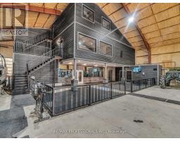 Discover Your Dream Muskoka Retreat! Welcome to this one-of-a-kind 5 bedroom, 5 bathroom 120ft x 80ft compound, nestled on over 8 acres of pristine land in Lake of Bays, perfectly located just minutes away from the charming town of Baysville, where you can easily dock your boat and enjoy Muskoka's second largest lake! This stunning property offers a unique blend of hobby farm potential and live/work opportunities in the heart of beautiful Muskoka, only a short drive from Bracebridge and Huntsville. Highlights include: A serene 0.5 acre pond fed by fresh natural springs, all framed by a breathtaking granite backdrop, 26Kw backup generator ensuring your comfort with auto on/off capability, cozy, energy-efficient in-floor heating powered by two 200k NTI boilers with state-of-the-art floor sensors and zoning controls, an impressive 9,000 Sq/ft Unilock patio featuring a built-in BBQ, perfect for entertaining! Inside the luxury continues with a gorgeous interior. Step inside to find a grand open-concept layout with towering 45-foot ceilings, complemented by an exquisite chefs kitchen equipped with triple ovens, a professional gas stove, and an oversized fridge/freezer - all anchored by a massive kitchen island! The primary suite offers a personal sanctuary with a fireplace, walk-in closet, and a spa-like bathroom featuring a freestanding tub overlooking natures beauty. Plus, there's a wheelchair accessible main floor bedroom/ensuite for convenience! Additional Features: 3 industrial garage doors for easy access to your workspace, a sophisticated camera system for peace of mind, and two cellular boosters ensuring crystal-clear LTE, Starlink internet with impressive speeds of 200 down and 50 up, keeping you connected while you enjoy your private trails and every outdoor adventure! Whether you are seeking a peaceful retreat or a dynamic living-work space, this property is tailored for both leisure and productivity! Don't miss the chance to experience this slice of paradise! (id:50886)