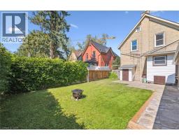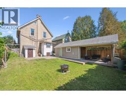 OPEN HOUSE SATURDAY OCTOBER 4TH 12-2PM. This charming yellow brick century home blends historic character with modern comfort, all just steps from the best of downtown living. The home welcomes you with a spacious covered porch and a large foyer that sets the tone for its warm and inviting interior. A bright living room overlooks the quiet, tree-lined one-way street, while the main floor also features a formal dining room perfect for hosting holidays and family gatherings. The all-white kitchen, updated in 2012, features ceramic tile flooring, pot lighting, ample storage, included appliances, and space for a breakfast table. At the back, a handy mudroom provides easy access to the private fenced yard. Upstairs, you will find three generous bedrooms and a 4-piece bath. An upper balcony off the hall offers a peaceful retreat overlooking the street. The stone basement provides laundry, storage, a rough-in for a bathroom, and a walk-up exit. There is also untapped potential with the attic, ready to be finished into a cozy loft. Outdoor living shines with a bricked driveway offering extra parking, plus a detached garage that's been cleverly converted into a garden shed in the front and a bar cabana with covered dining in the back. Definitely a spot to host some friends or kick back and relax. With tall ceilings, abundant natural light, and a location that can't be beat, this timeless home offers both character and convenience in the heart of the city. Almost all windows updated, furnace 2018. (id:50886)