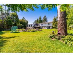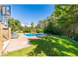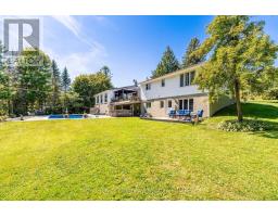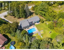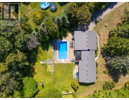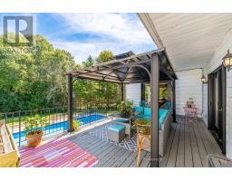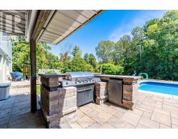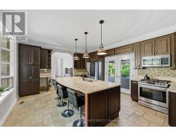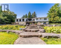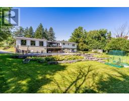This extraordinary 2,584 sq. ft. bungalow is set on a private 1.87-acre lot, offering a rare combination of space, elegance, and lifestyle. The backyard is a true oasis with an inground pool, hot tub, interlock stone patio, Armour stone accents, and an outdoor kitchen an entertainers dream. A winding trail takes you through the trees to a charming bridge over a creek and a sunlit clearing, perfect for gatherings or quiet escapes. Inside, the home showcases high-end finishes including hardwood and travertine flooring, crown moulding, and a thoughtfully designed open layout. At its heart, the gourmet kitchen features a centre island, granite counters, upgraded cabinetry, stainless steel appliances, and a cozy gas fireplace. Sunlight streams through large windows, with a patio door that opens to the deck overlooking the pool and wooded backdrop. Seamlessly connected to the kitchen, the expansive family and dining area offers vaulted ceilings, floor-to-ceiling windows, and a second gas fireplace. This impressive space is ideal for entertaining while maintaining a warm and inviting feel. The bedroom wing includes three generously sized bedrooms and two updated 4-piece baths, each with luxurious finishes. The lower level adds exceptional versatility with a bright living room and walkout to the pool, an additional bedroom, large rec room, office nook, laundry room, and space for a future kitchenette perfect for an in-law suite or multi-generational living. A rare offering that blends elegance, functionality, and resort-style living, this property is truly a must-see. (id:50886)
