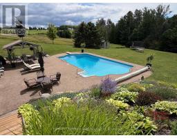 Discover the perfect blend of luxury and nature at this spectacular rural retreat, minutes from the vibrant Village of Creemore. Set on nearly 42 private, rolling acres, this property offers a beautiful mix of open fields, mature forests, and a serene stream. Explore almost two miles of meticulously maintained trails, ideal for hiking, horseback riding, or cross-country skiing. The home itself spans over 3,000 square feet of living space, designed with an open-concept layout. Featuring four bedrooms and three bathrooms, the interior is finished with solid oak flooring and trim throughout. Gather in the cozy, sunken living room by the fireplace, or entertain in the lower-level great room, which also boasts a fireplace and a walk-out to a stunning outdoor oasis. Step outside to a beautiful in-ground pool overlooking the forest-your private sanctuary. Additional features include an impressive 50 ft x 40 ft outbuilding, providing ample space for all your toys, vehicles, or a workshop. This is a four-season paradise. You are minutes away from premier recreation: skiing at Devil's Glen and Blue Mountains, golfing at Mad River, and the shores of Georgian Bay and Wasaga Beach. Experience peaceful country living with every amenity nearby. (id:50886)