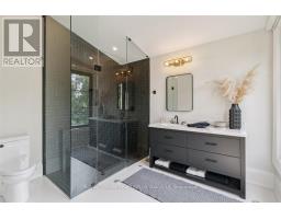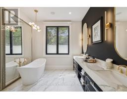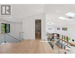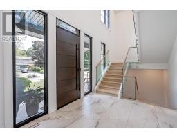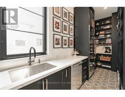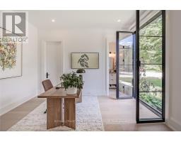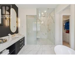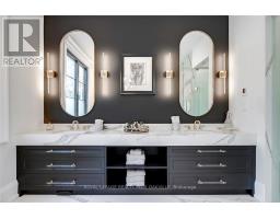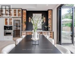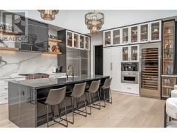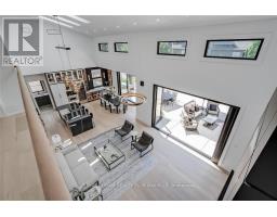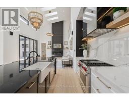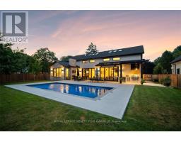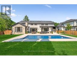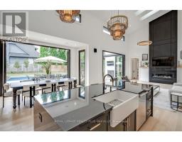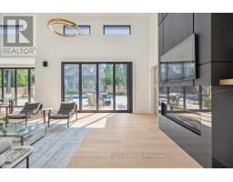 This stunning, decadently appointed custom-built modern farmhouse, in sought after Coronation Park seamlessly blends luxury, functionality and timeless design across a spacious open-concept layout. Featuring four unique and inviting bedrooms, all with private ensuites, this home offers both comfort and privacy for family members and guests. The luxurious MAIN FLOOR PRIMARY SUITE, with vaulted ceilings, gas fireplace and a walkout to the backyard oasis, features double closets and a luxurious five-piece ensuite which includes an inviting soaker tub, dual vanities, walk-in shower and water closet. At the heart of the home, the chef's kitchen is an entertainer's dream with with a large island, high-end appliances, a walk-in pantry equipped with a second sink, additional fridge and dishwasher, abundant storage and a large window that floods the space with natural light. The open-concept living room features over 20 foot soaring ceilings, a dramatic fireplace and expansive bi-fold doors that open to the outdoors, creating a seamless indoor-outdoor experience. The adjacent dining room with custom cabinetry continues the flow of the space with more bi-fold doors offering direct access to the pool area. Soaring ceilings, skylights, a perfect balance of warm woods and an abundance of glass, European double glass low-e argon windows and doors, emergency generator, heated floors in all tiled areas, garage and concrete driveway. A backyard retreat with saltwater pool, double-sided gas fireplace, extensive patio with built-in kitchen area and outdoor access to a private two piece bathroom for pool enthusiasts. Even a dog wash station in the garage. This home is designed to be not only stunning, but also smart with over $200 000 in Smart Technology allowing you to control your home with a touch of a button. Located in one of Oakville's hottest pockets, within a walk to several schools, the lake, and amazing Bronte Village. Who could ask for anything more? (id:50886)